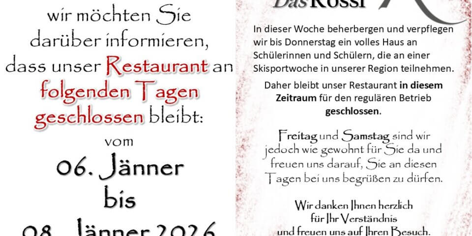 Unser 3 Sterne Hotel & Wirtshaus DAS RÖSSL verfügt über ca. 60 Betten und ist ein idealer Ausgangspunkt für Wanderungen, Ausflüge mit den von uns zur Verfügung gestellten Fahrrädern, Bergtouren oder sonstiger Ausflugsziele. Mit der im Zimmerpreis inkludierten Phyrn Priel Aktiv Karte können Sie im Sommer Schwimmbäder, Bergbahnen sowie Erkundungstouren von Tal und Berg mit den Öffis zum Highlight Ihres Urlaubs machen.